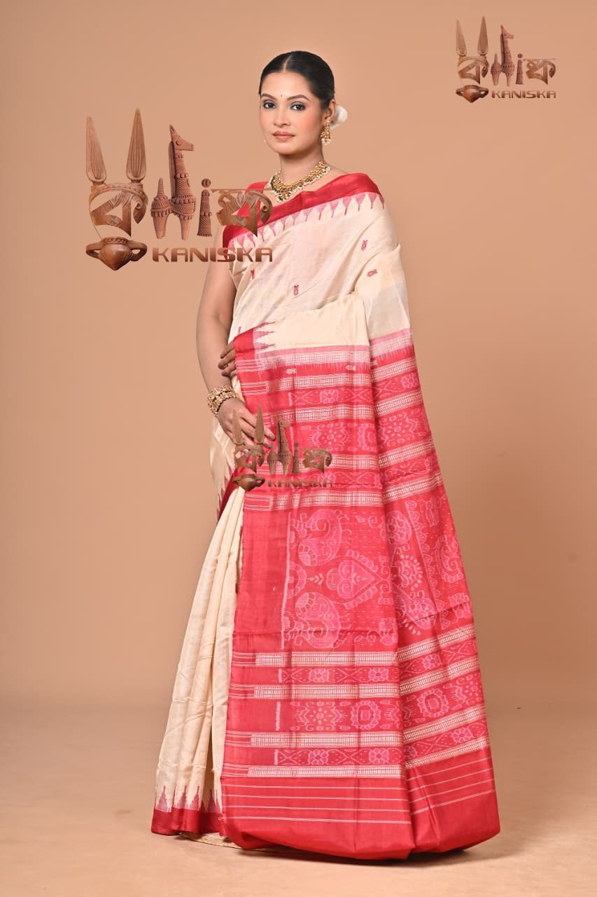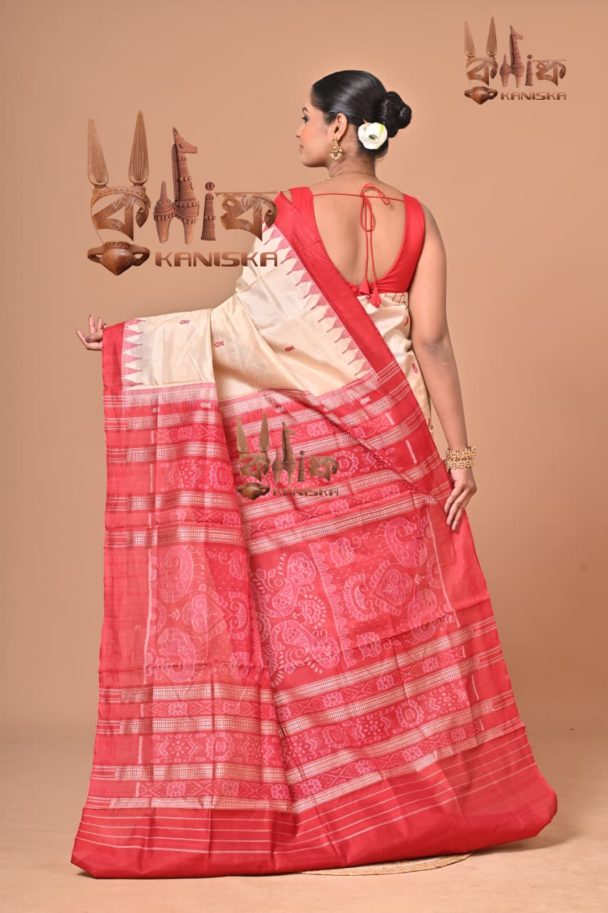 The hallmark of Bichitrapuri saree is its Large Pasapali design, running across the body. The highlight of this saree is its beautiful border with macha/fish