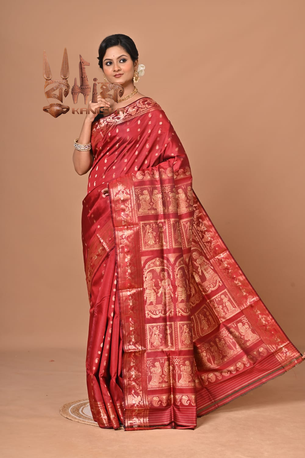 The elegant Swarnachari saree of West Bengal is a piece of handloom legacy. Woven in bright colours they are famous worldwide because of the intricate patterns and figurines that are created on the saree. They relate a mythological phenomenon and sometimes an entire story altogether.